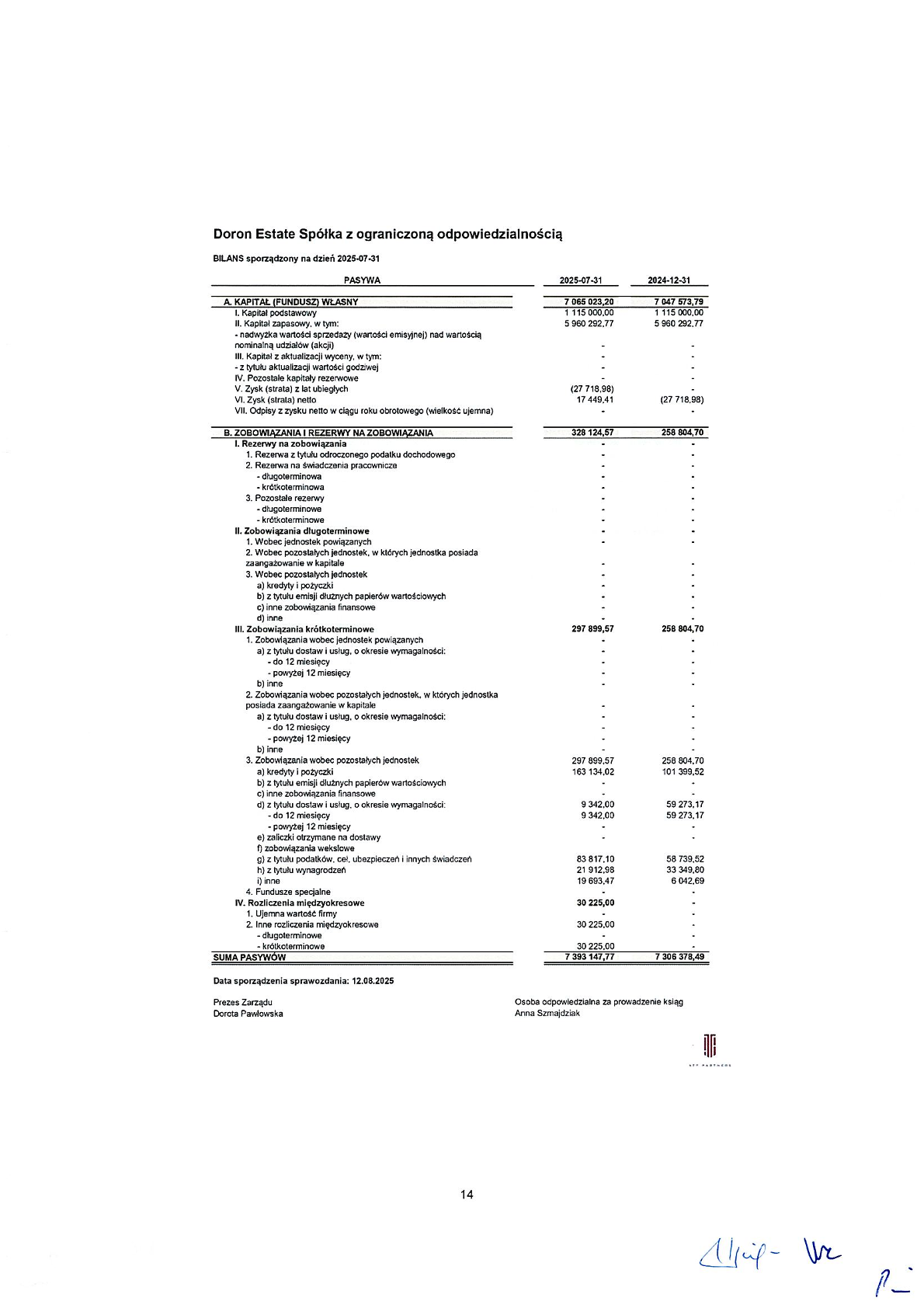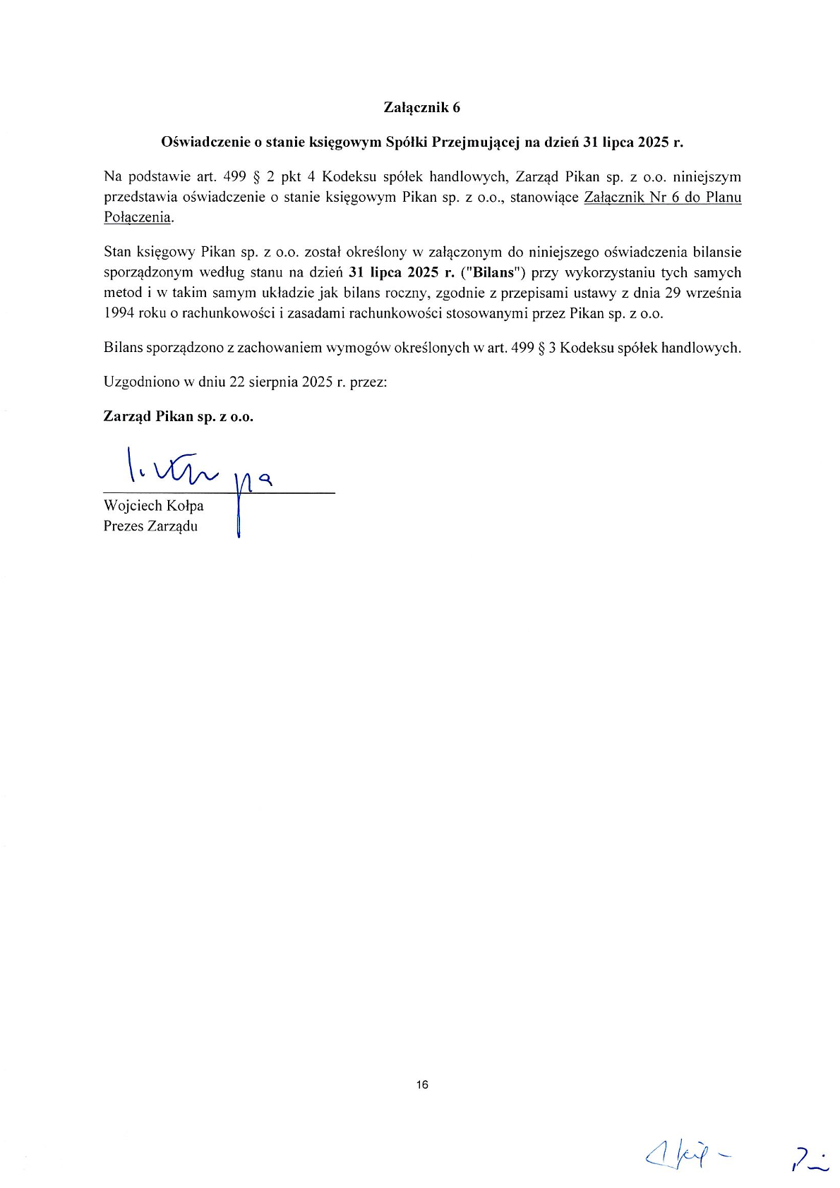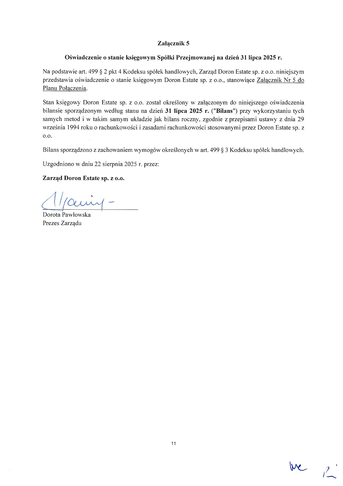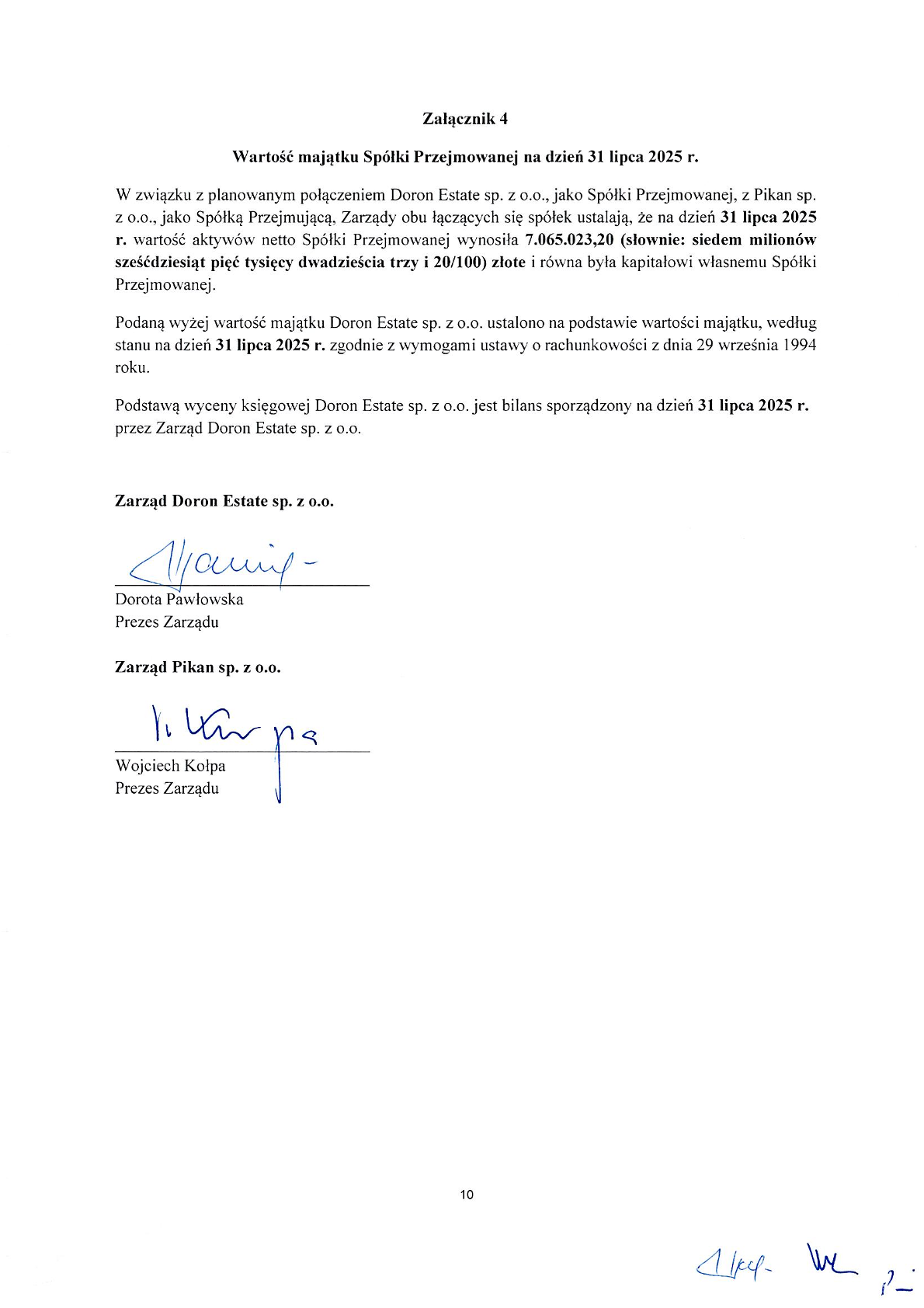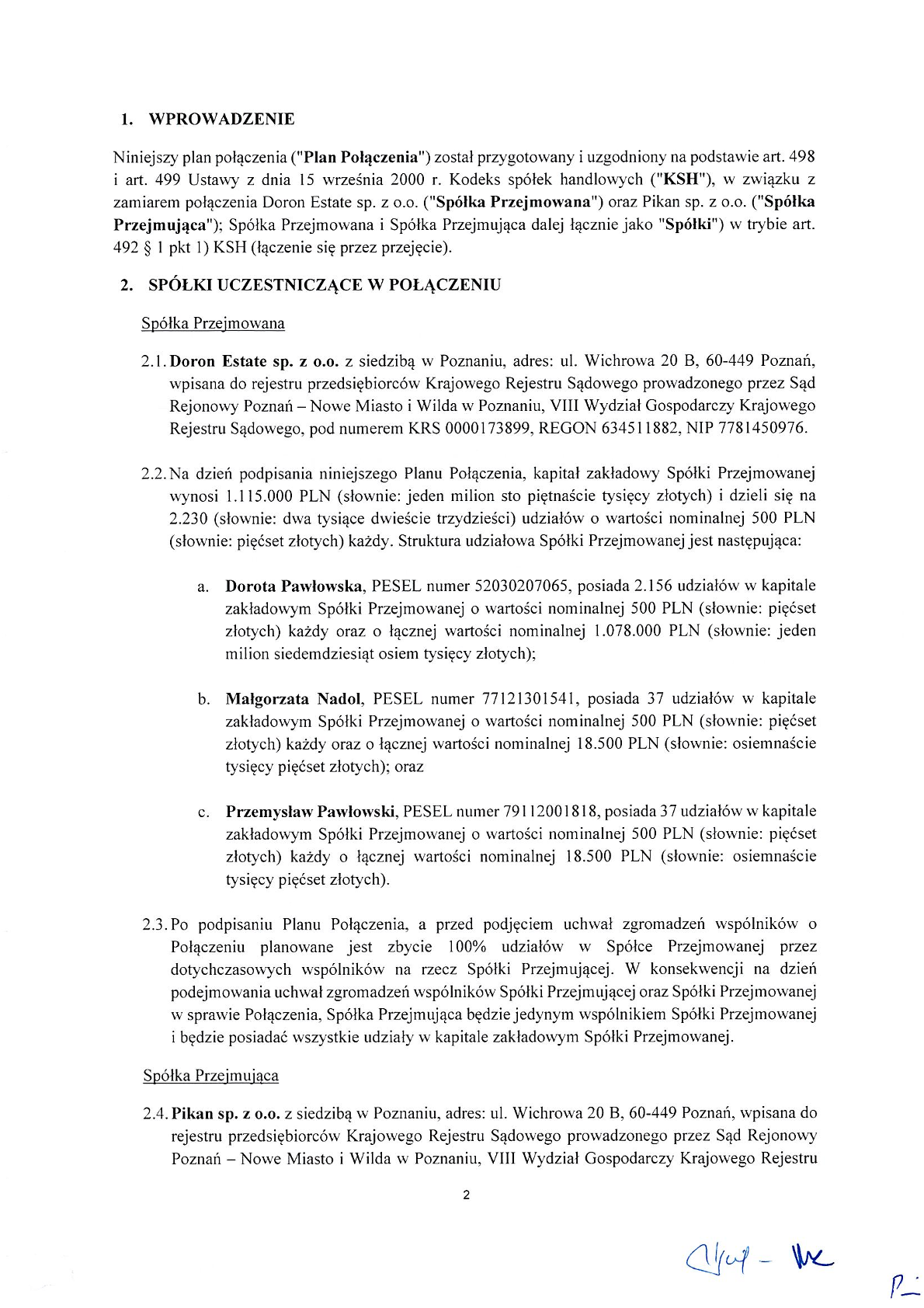 Plan połączenia PIKAN SP. Z O.O. oraz DORON ESTATE SP. Z O.O. z dnia 22 sierpnia 2025 r. - w formacie PDF